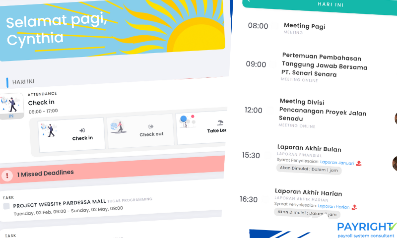 Tetap produktif dengan kelengkapan PayRight. Digitalisasi semua proses manajemen Anda.